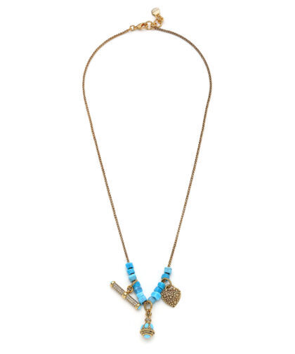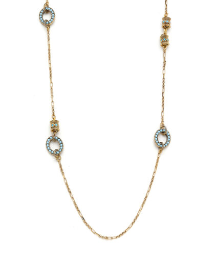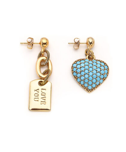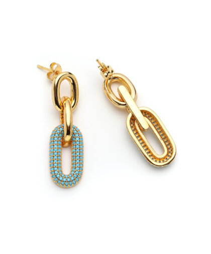 Turkuaz Zirkon ,Cam & Altın Kaplama Pirinç