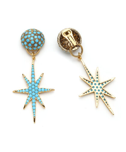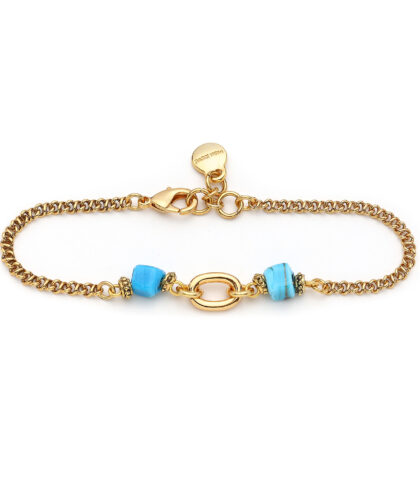 Turkuaz Kabaşon, Turkuaz Zirkon & Altın Kaplama Pirinç